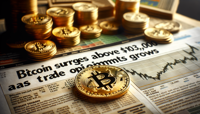 Bitcoin surged above $103,000 after U.S. President Donald Trump hinted at lifting a 10% tariff on all imports in a Truth Social post. This optimistic trade news also propelled the Dow Jones and S&P 500 upwards. The price action surpassed Bitcoin’s significant psychological level of $100,000, indicating a strong market response.